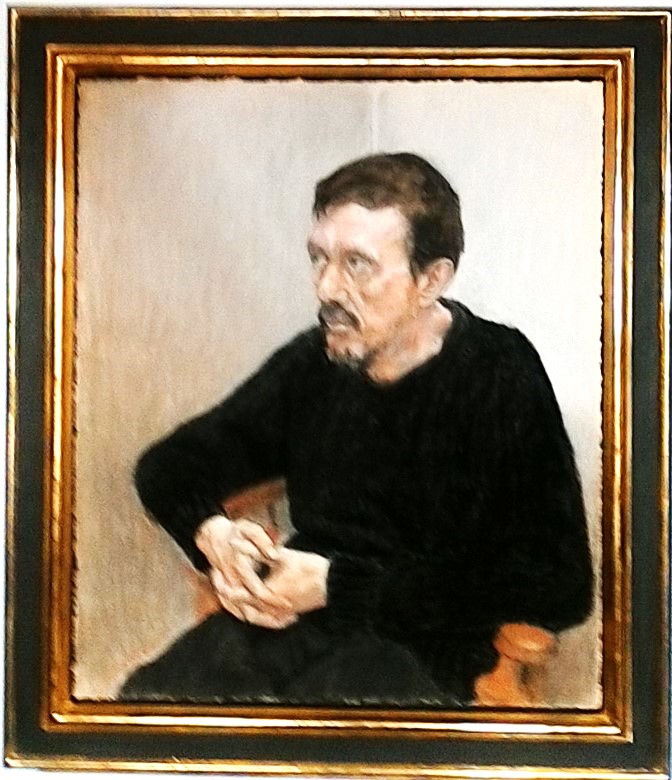 The Artist’s younger son. Philip suffers from Asperger’s Syndrome. This causes anxiety and apprehension which is shown in his natural pose. The clasped hands are a typical self protecting gesture. Philip has a quiet, non violent disposition full of empathy and fellow feeling. Note the placement and colouration of the chair arm in the foreground. It gives balance to the hands and face as the third, strategically placed feature in the picture.