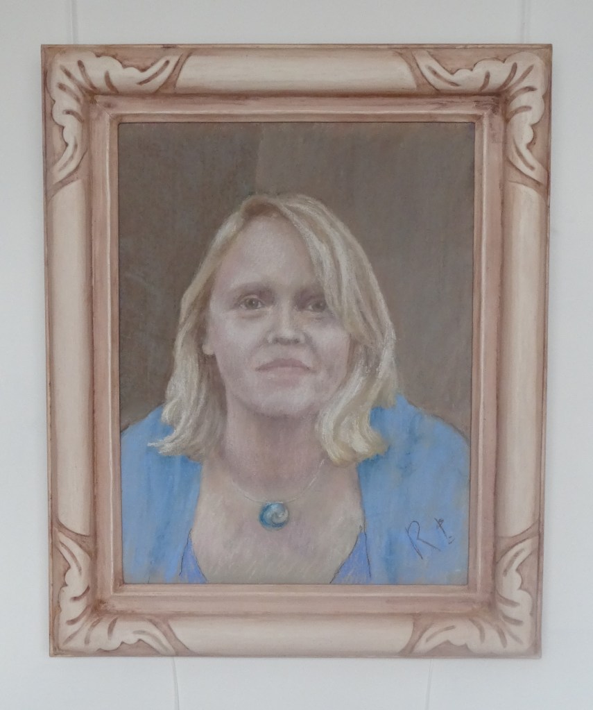 The artist’s younger daughter, Annabelle, is tender hearted and loves animals. When she was a child, she saw the drawing of the unfortunate magpie depicted here. She said: ‘You should have buried it.’ Although tender by nature Annabelle has a strong personality. This is seen in her direct gaze looking at us. She obtained a first class honours degree in bio-chemistry at UMIST, the Manchester University. She went on to do a post doc and now works for a major food producer as project manager.