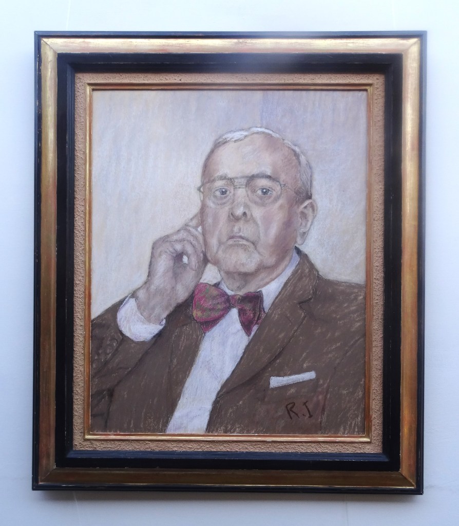 A formal portrait showing the Artist in a relaxed, natural pose. The hand raised to the face is typical, a gesture of one with a sensitive sense of touch. It is indicative of the importance of hand gestures to the Artist. Note the negative spaces behind the hand. They add dimension to the painting. His smart, casual dress shows his respect for onlookers.